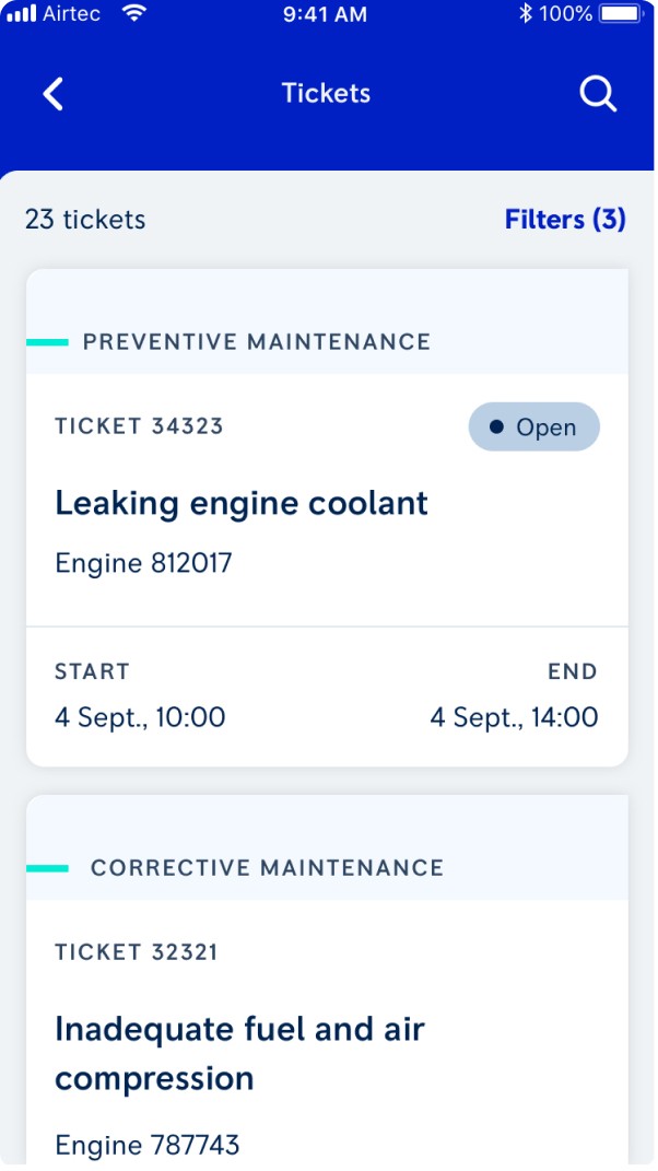 Ticket Overview: The experience begins with a clear, organized ticket list that helps technicians quickly understand their workload for the day, replacing the scattered notes and messages they previously relied on.