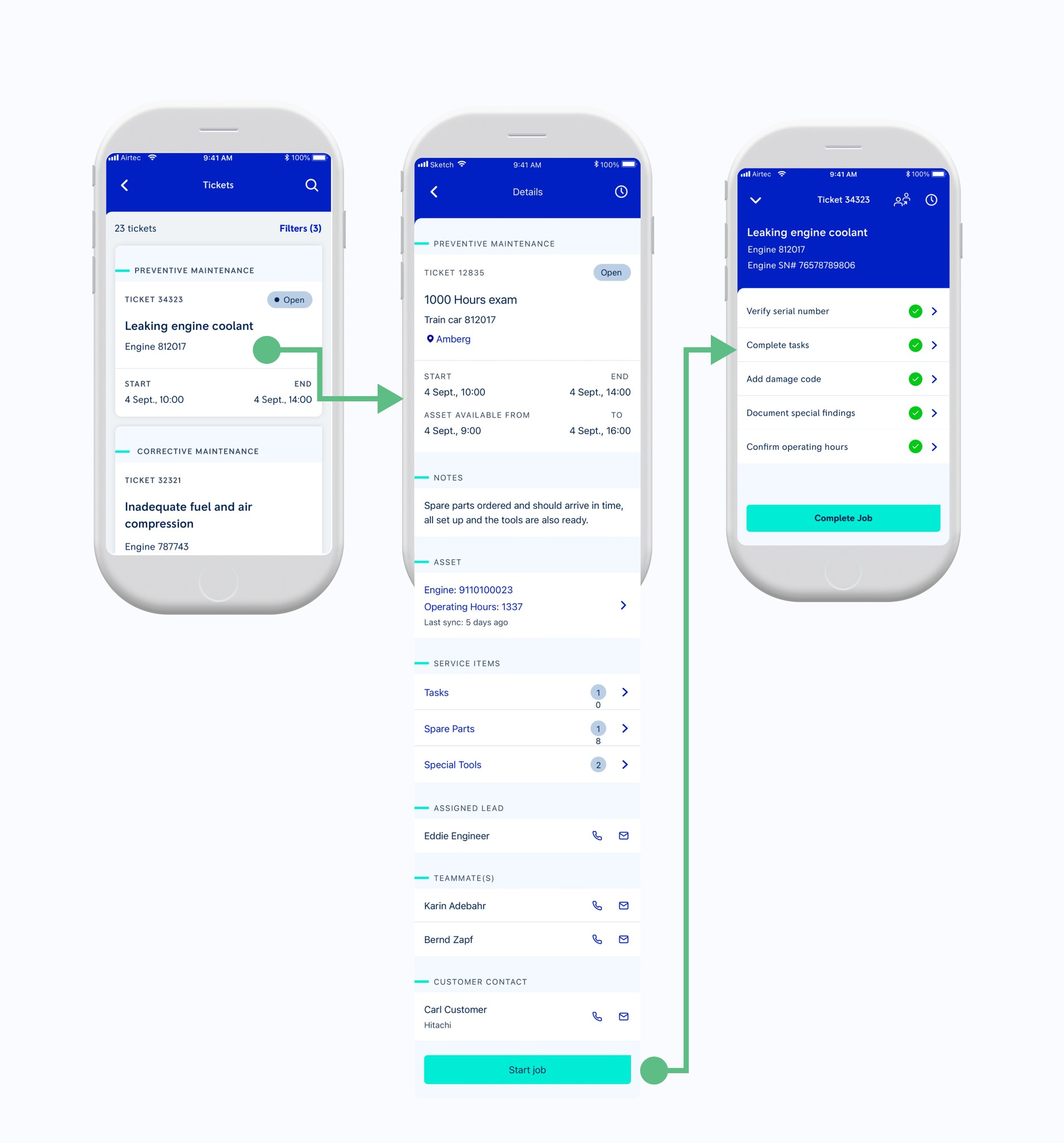 Each job card includes a guided checklist and required actions, reducing errors and ensuring consistency across different technicians.